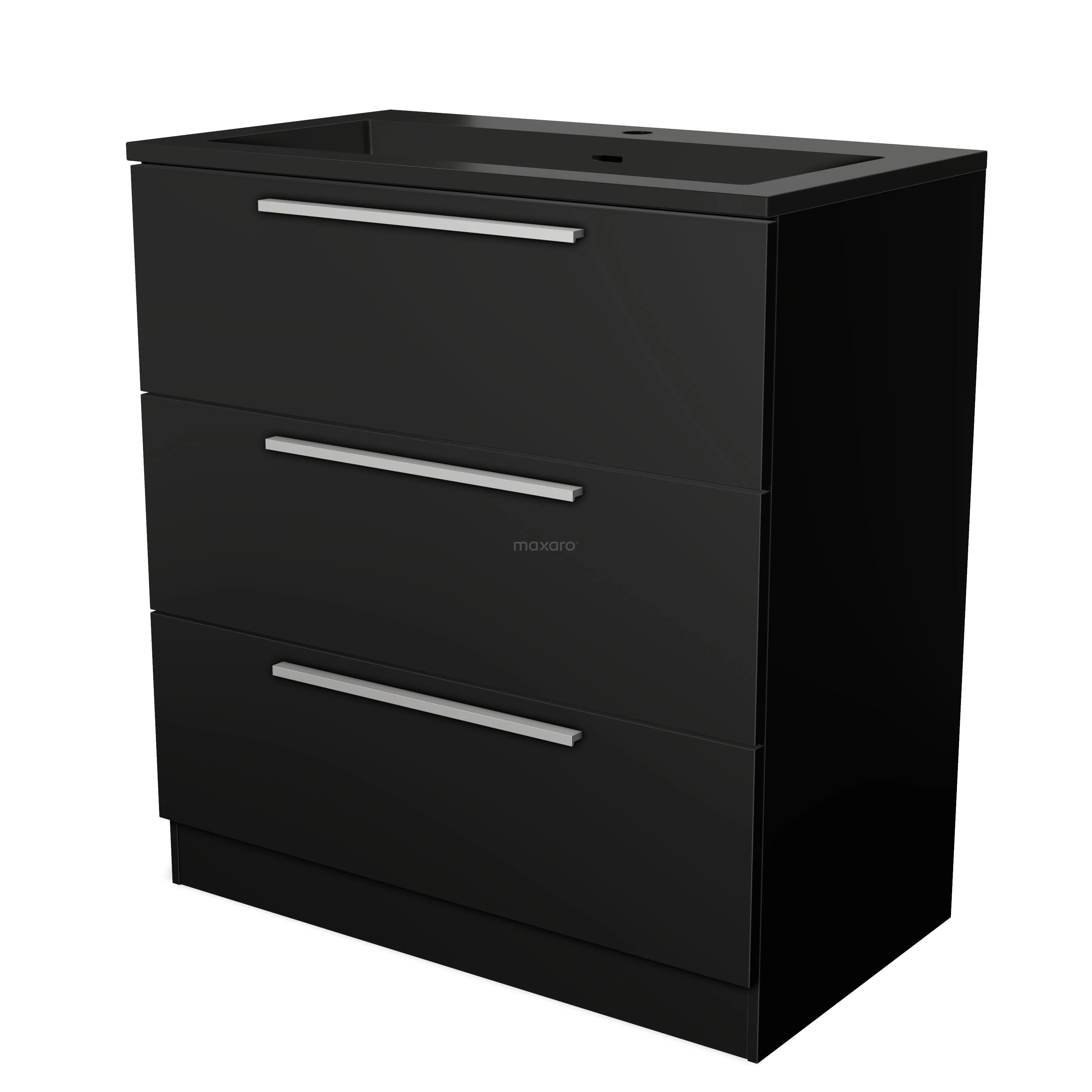 Modulo Waschtische | 80 cm Matt Schwarz Flach front Quarz 3 stehende Schubladen