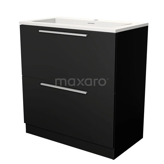 Modulo Waschtische | 80 cm Matt Schwarz Flach front Solid Surface 2 hohe Schubladen übereinanderliegend