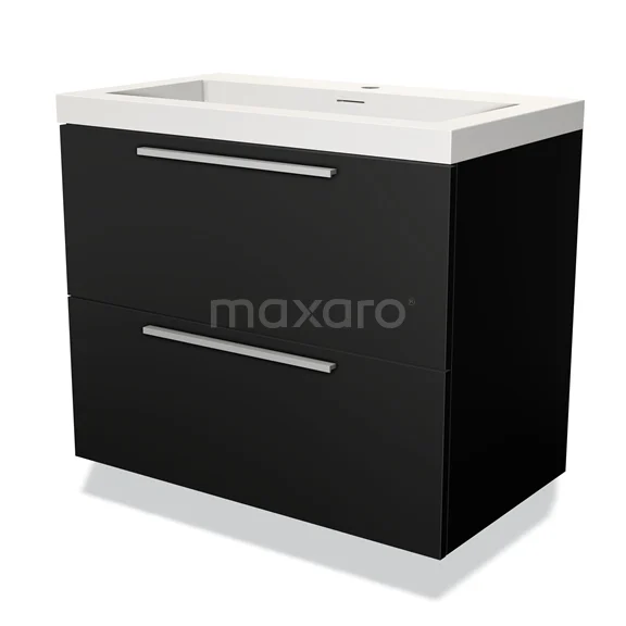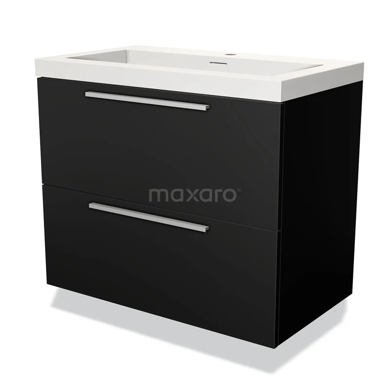Modulo Waschtische | 80 cm Matt Schwarz Flach front Solid Surface 2 übereinanderliegende Schubladen