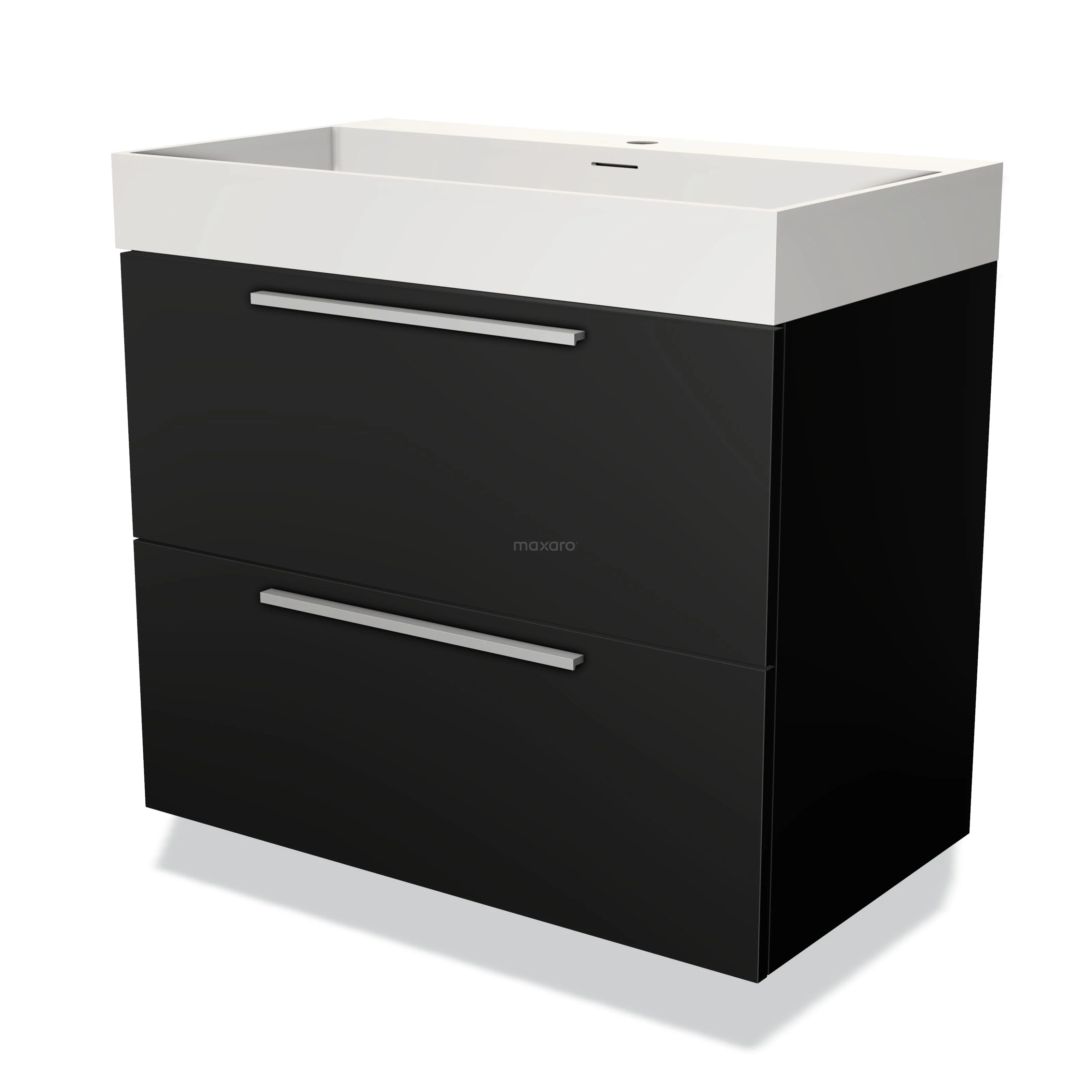 Modulo Waschtische | 80 cm Matt Schwarz Flach front Solid Surface 2 übereinanderliegende Schubladen