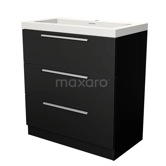 Modulo Waschtische | 80 cm Matt Schwarz Flach front Solid Surface 3 stehende Schubladen
