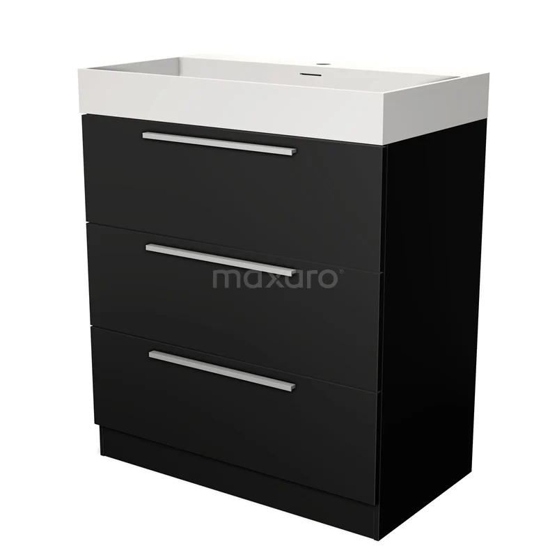 Modulo Waschtische | 80 cm Matt Schwarz Flach front Solid Surface 3 stehende Schubladen