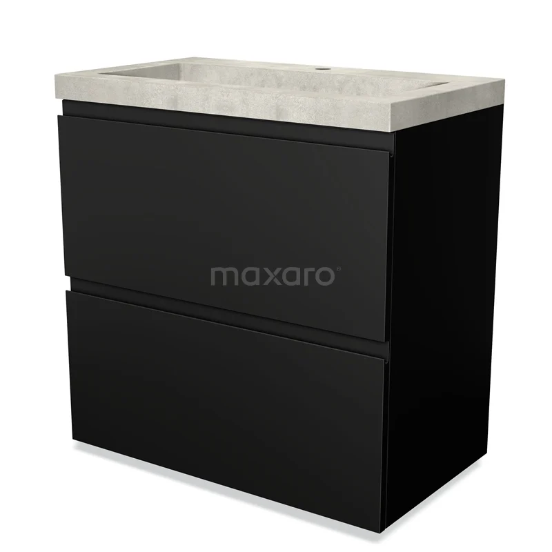 Modulo Waschtische | 80 cm Matt Schwarz Grifflos front Beton 2 hohe Schubladen übereinanderliegend