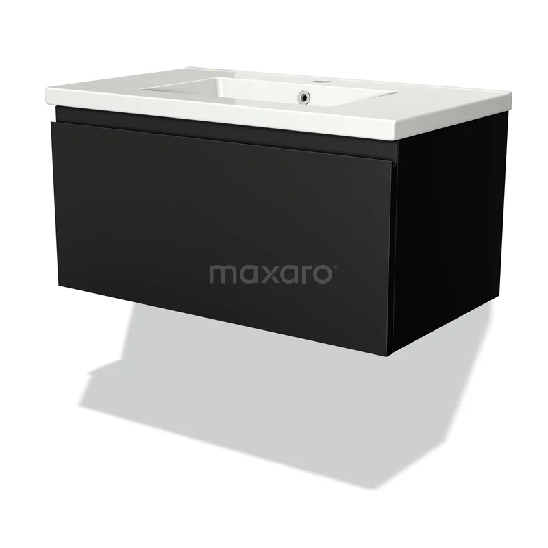 Modulo Waschtische | 80 cm Matt Schwarz Grifflos front Keramik 1 Schublade