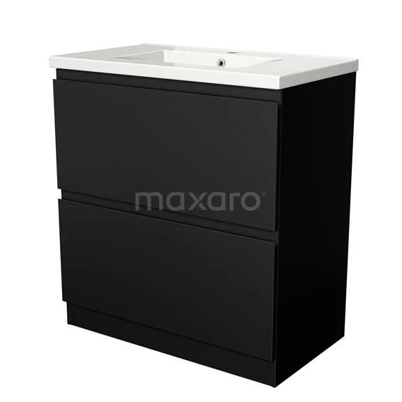Modulo Waschtische | 80 cm Matt Schwarz Grifflos front Keramik 2 hohe Schubladen übereinanderliegend