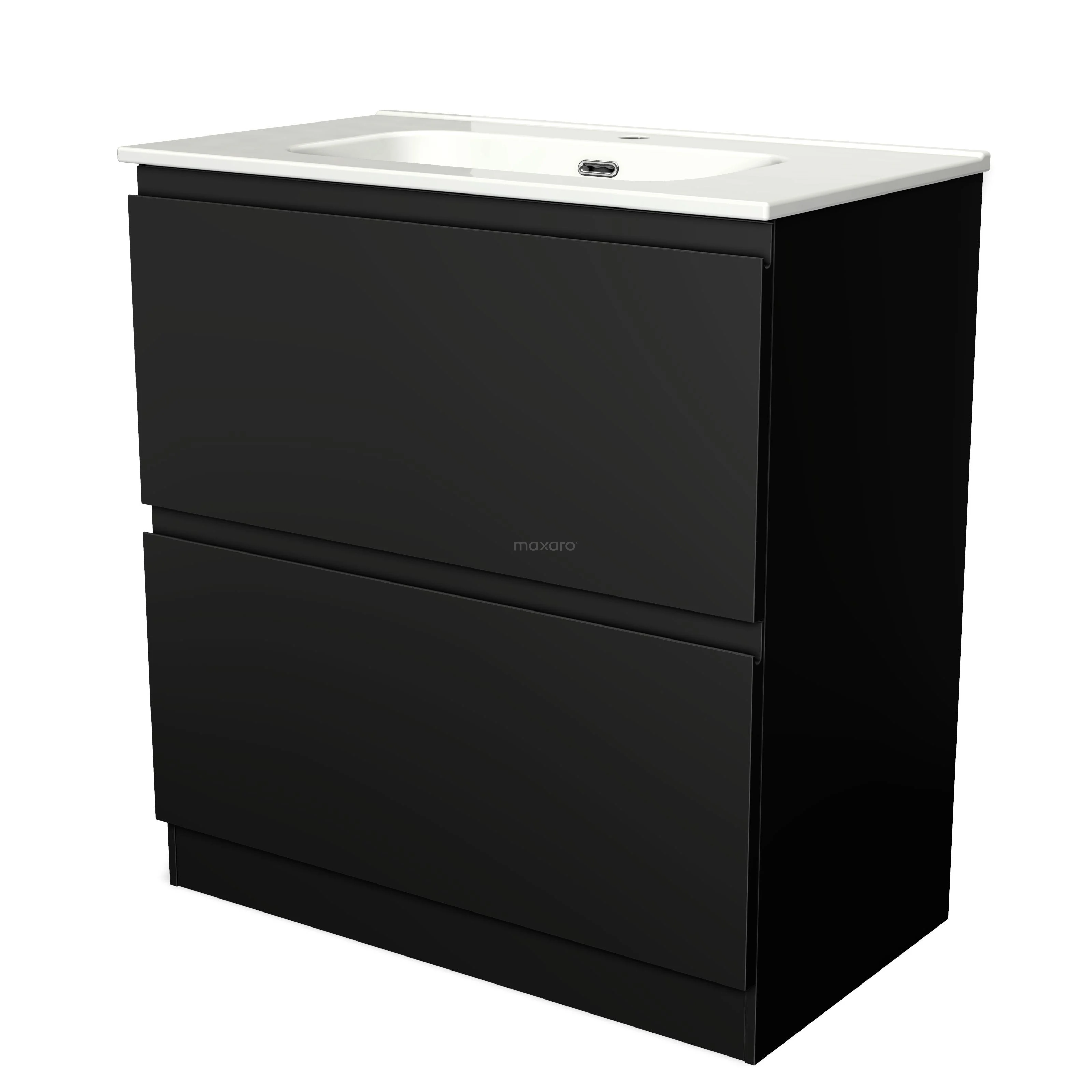 Modulo Waschtische | 80 cm Matt Schwarz Grifflos front Keramik 2 hohe Schubladen übereinanderliegend