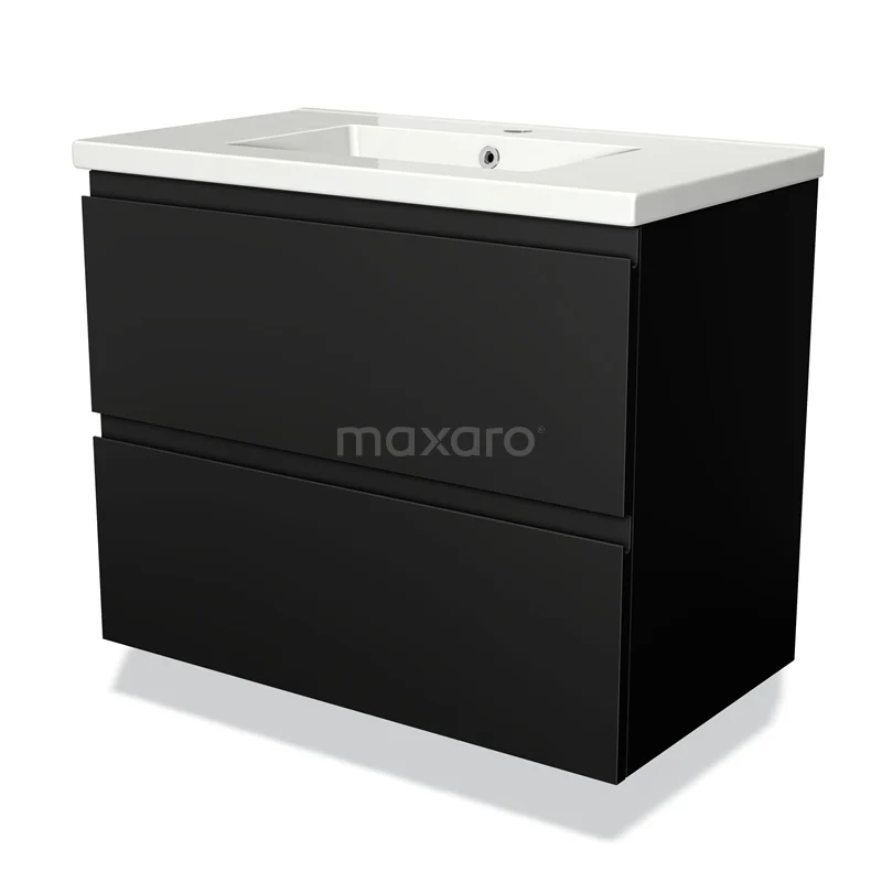 Modulo Waschtische | 80 cm Matt Schwarz Grifflos front Keramik 2 übereinanderliegende Schubladen