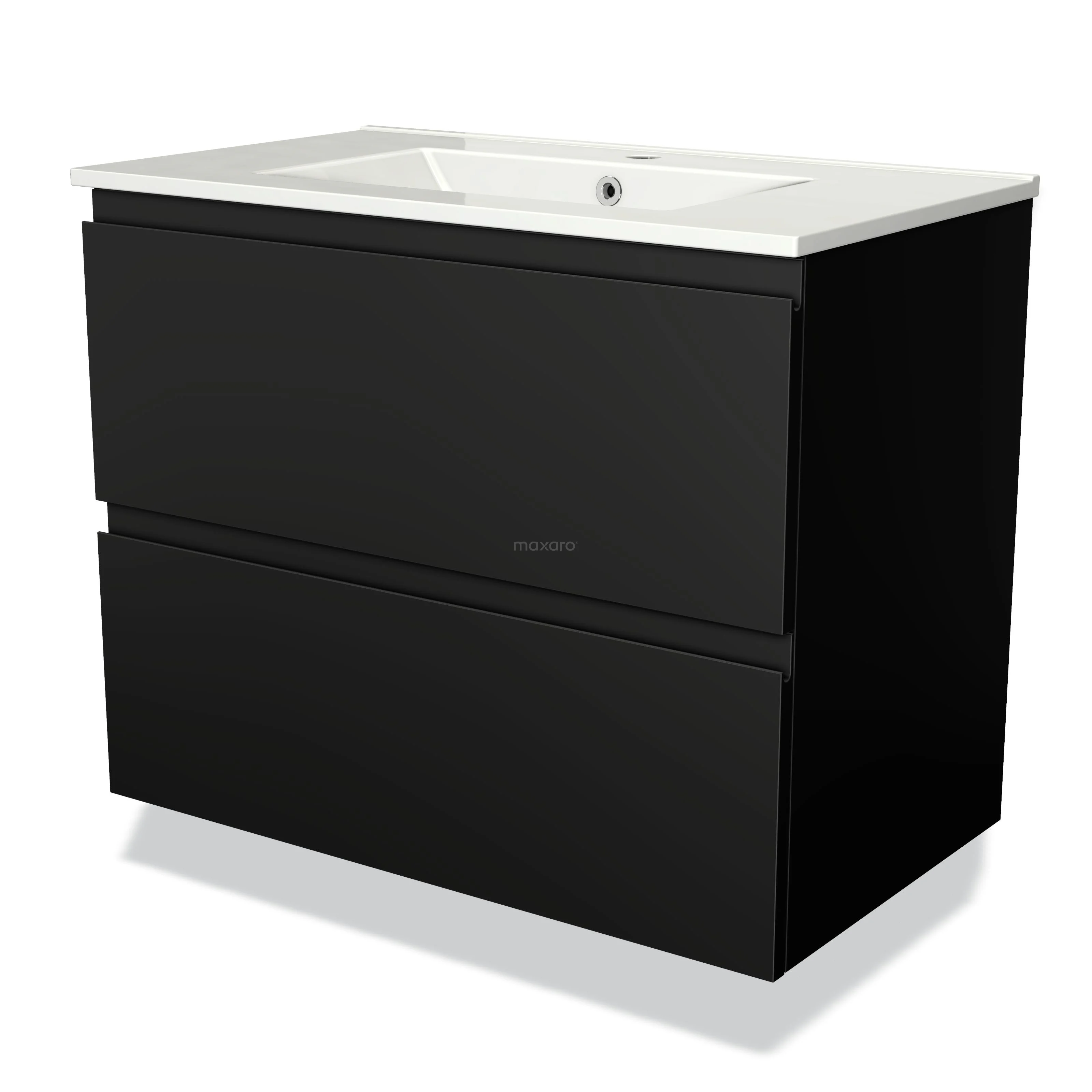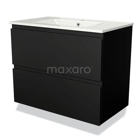 Modulo Waschtische | 80 cm Matt Schwarz Grifflos front Keramik 2 übereinanderliegende Schubladen