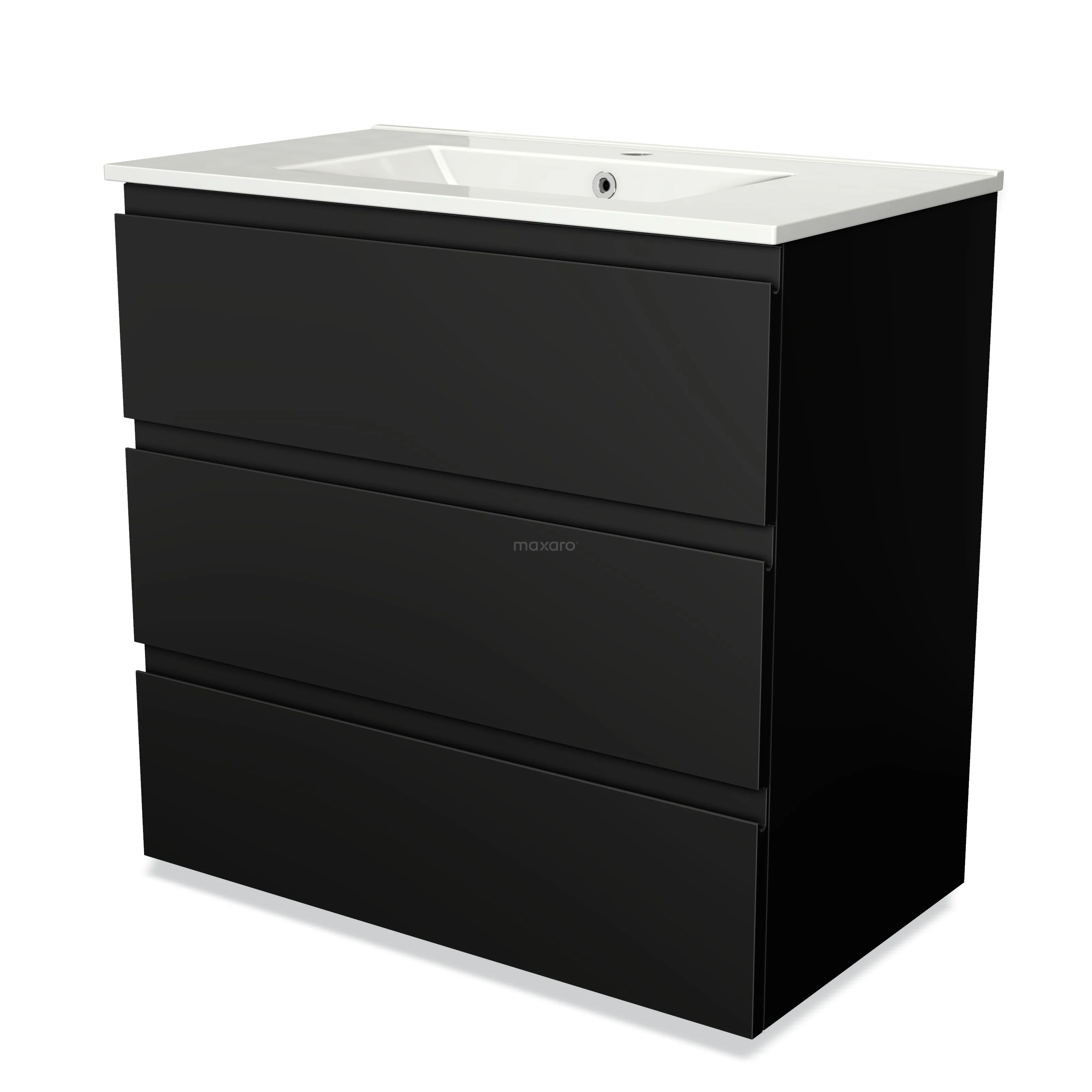 Modulo Waschtische | 80 cm Matt Schwarz Grifflos front Keramik 3 Schubladen