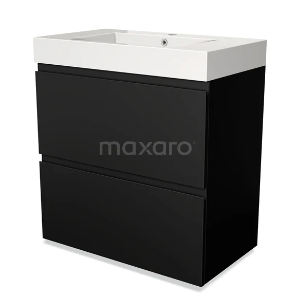 Modulo Waschtische | 80 cm Matt Schwarz Grifflos front Mineralguss 2 hohe Schubladen übereinanderliegend