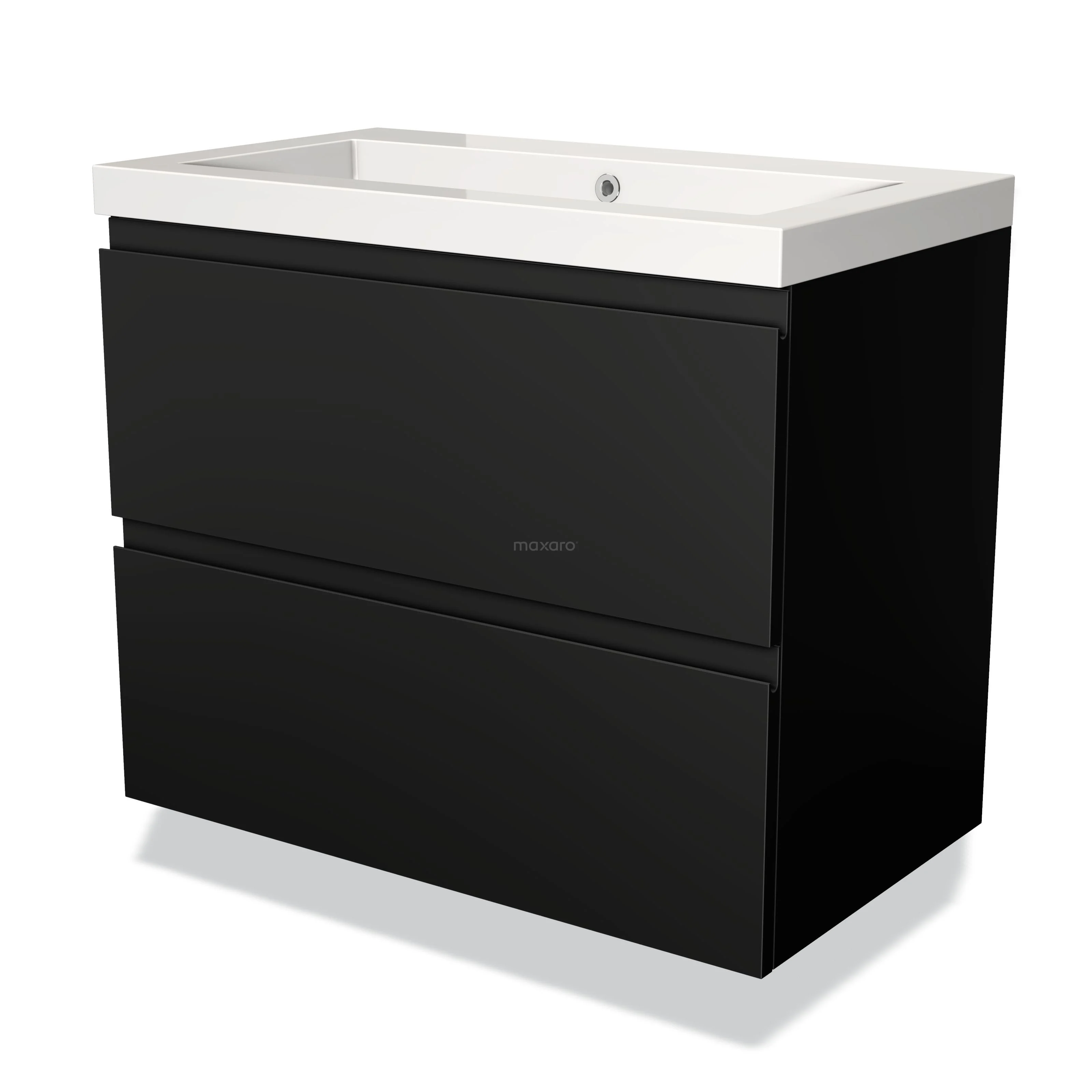 Modulo Waschtische | 80 cm Matt Schwarz Grifflos front Mineralguss 2 übereinanderliegende Schubladen