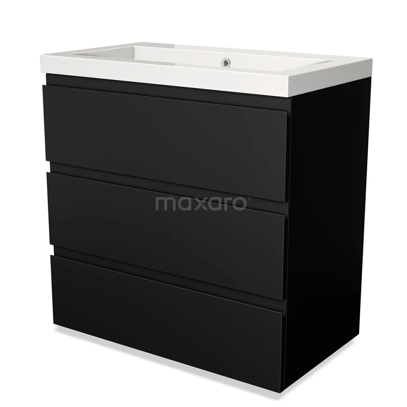 Modulo Waschtische | 80 cm Matt Schwarz Grifflos front Mineralguss 3 Schubladen