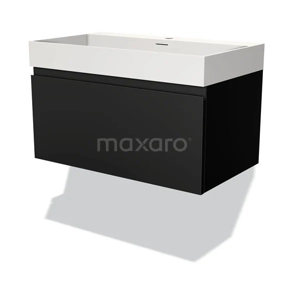 Modulo Waschtische | 80 cm Matt Schwarz Grifflos front Solid Surface 1 Schublade