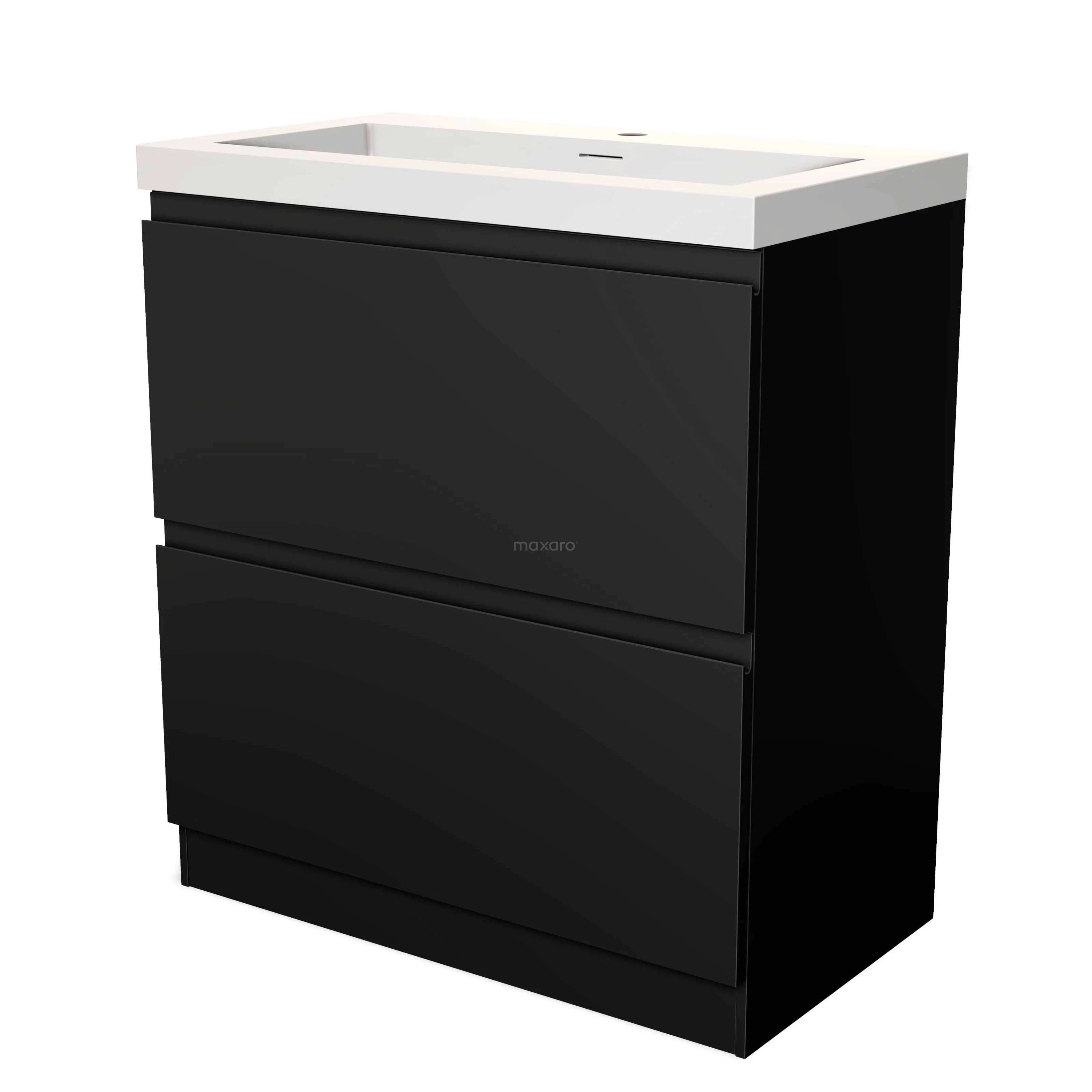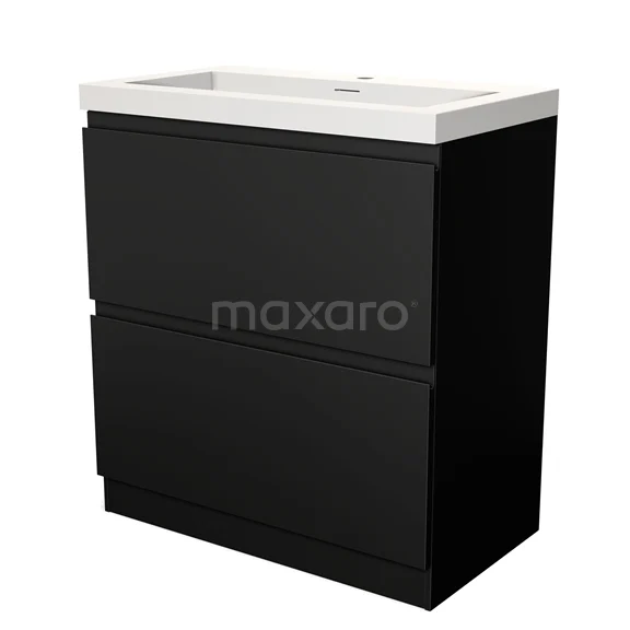 Modulo Waschtische | 80 cm Matt Schwarz Grifflos front Solid Surface 2 hohe Schubladen übereinanderliegend