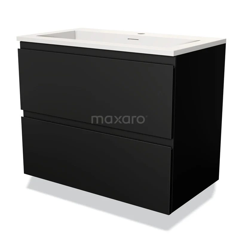 Modulo Waschtische | 80 cm Matt Schwarz Grifflos front Solid Surface 2 übereinanderliegende Schubladen