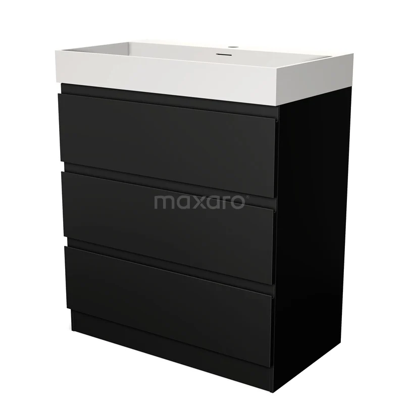 Modulo Waschtische | 80 cm Matt Schwarz Grifflos front Solid Surface 3 stehende Schubladen