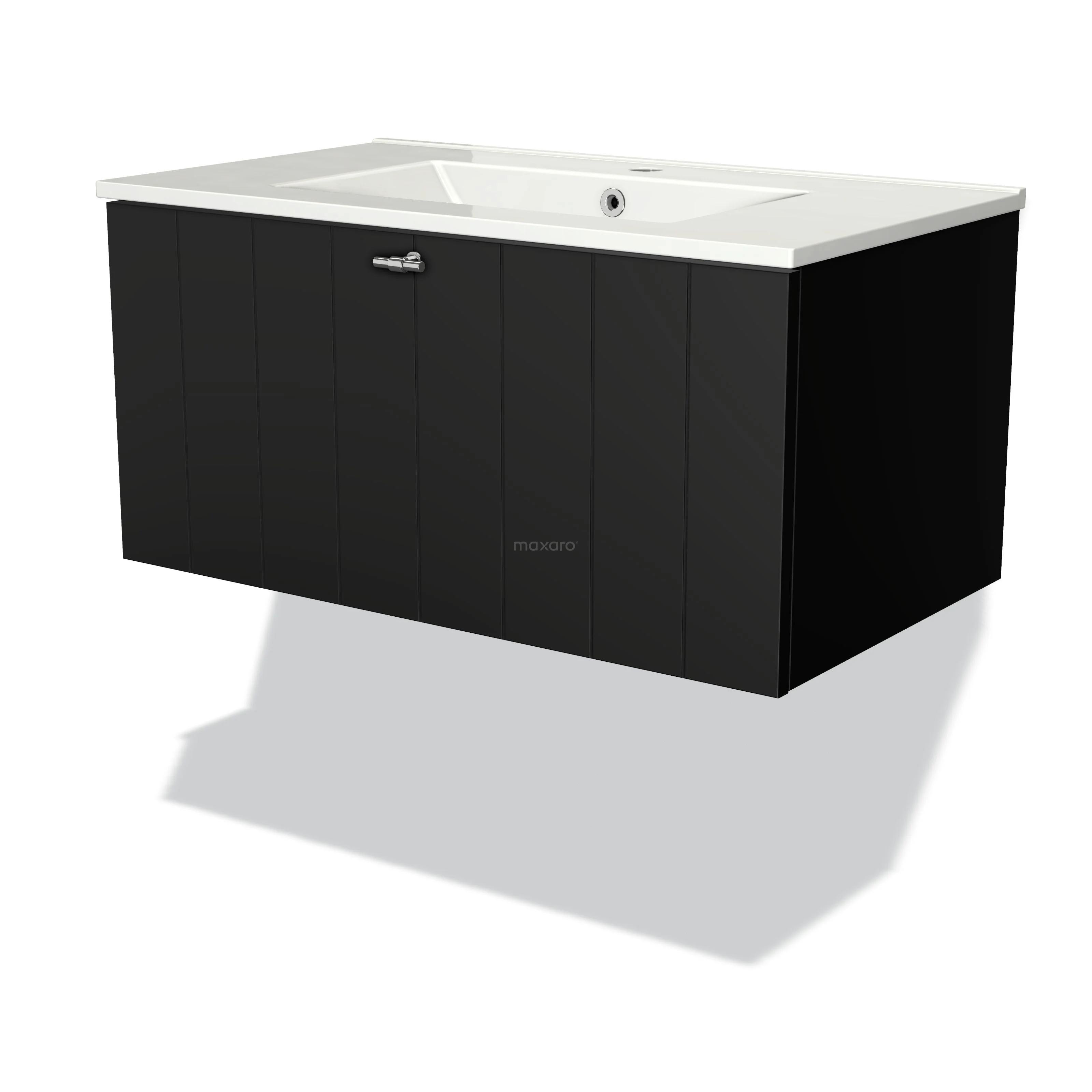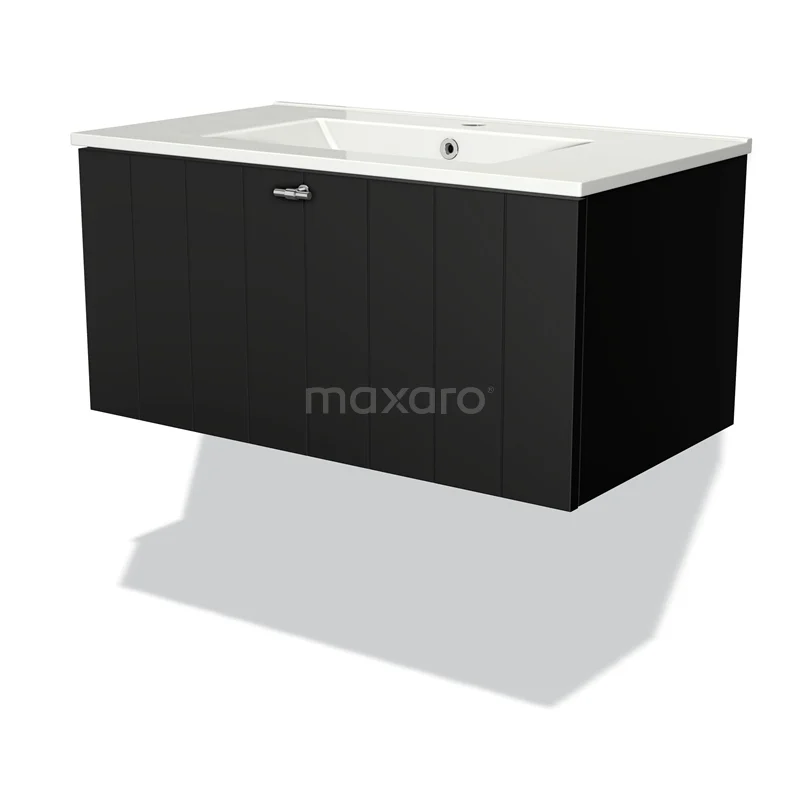 Modulo Waschtische | 80 cm Matt Schwarz Lamelle front Keramik 1 Schublade