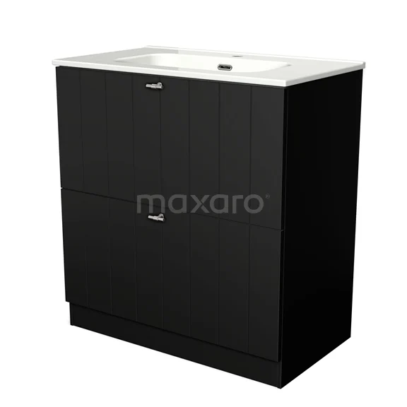 Modulo Waschtische | 80 cm Matt Schwarz Lamelle front Keramik 2 hohe Schubladen übereinanderliegend
