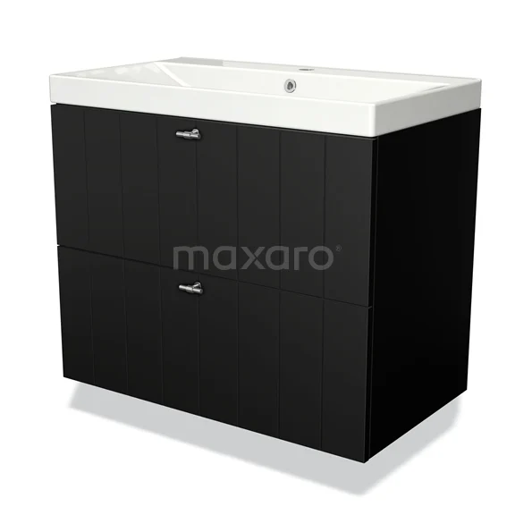 Modulo Waschtische | 80 cm Matt Schwarz Lamelle front Keramik 2 übereinanderliegende Schubladen
