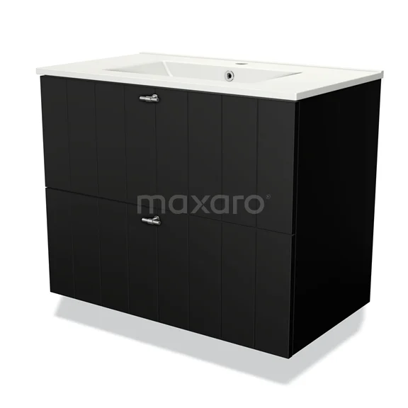 Modulo Waschtische | 80 cm Matt Schwarz Lamelle front Keramik 2 übereinanderliegende Schubladen