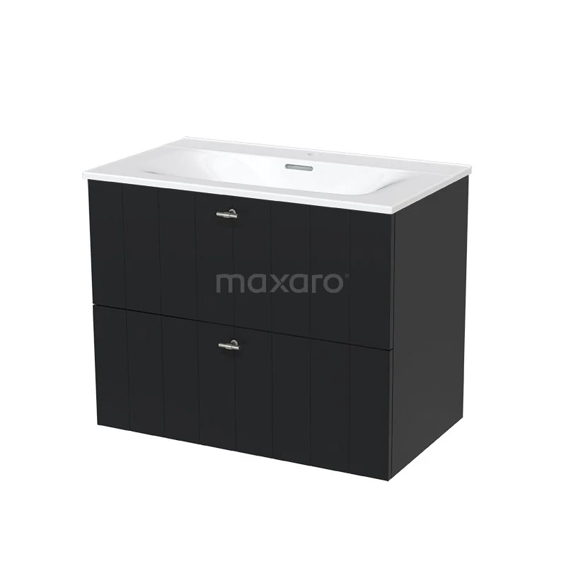 Modulo Waschtische | 80 cm Matt Schwarz Lamelle front Keramik 2 übereinanderliegende Schubladen