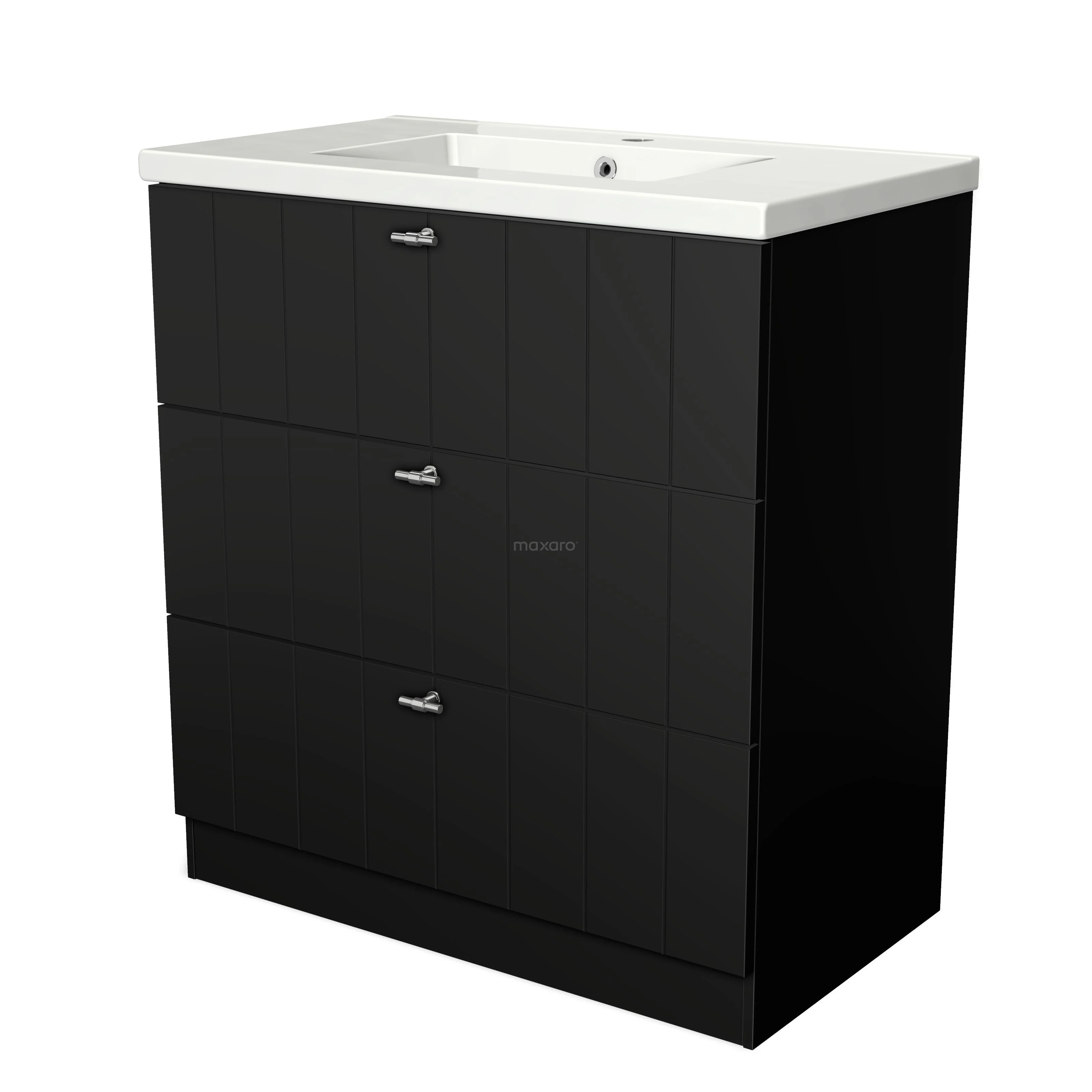 Modulo Waschtische | 80 cm Matt Schwarz Lamelle front Keramik 3 stehende Schubladen