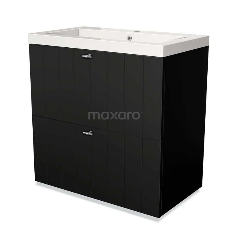 Modulo Waschtische | 80 cm Matt Schwarz Lamelle front Mineralguss 2 hohe Schubladen übereinanderliegend