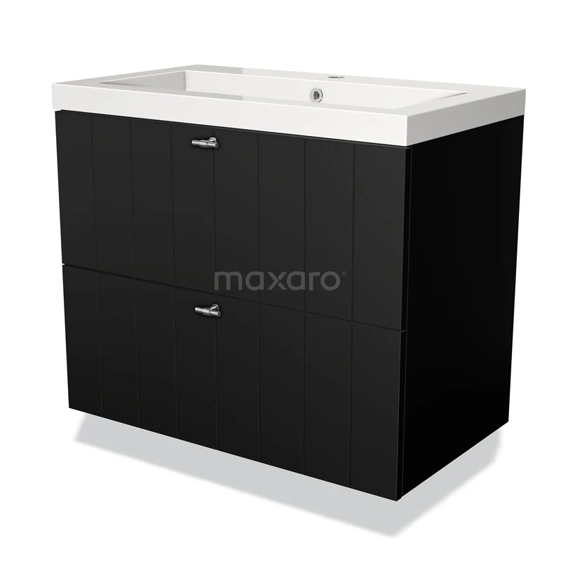Modulo Waschtische | 80 cm Matt Schwarz Lamelle front Mineralguss 2 übereinanderliegende Schubladen