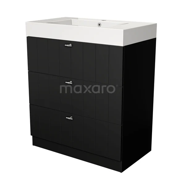 Modulo Waschtische | 80 cm Matt Schwarz Lamelle front Mineralguss 3 stehende Schubladen