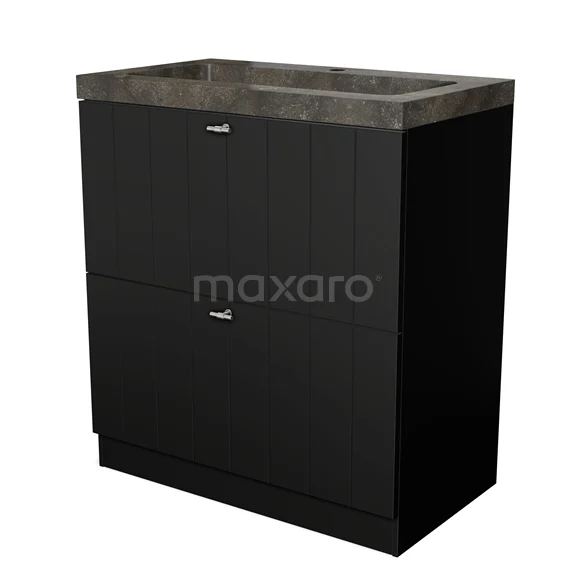 Modulo Waschtische | 80 cm Matt Schwarz Lamelle front Naturstein 2 hohe Schubladen übereinanderliegend