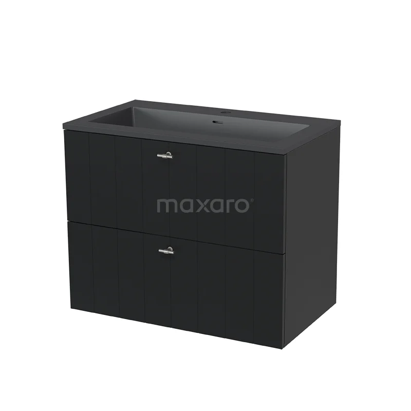 Modulo Waschtische | 80 cm Matt Schwarz Lamelle front Quarz 2 übereinanderliegende Schubladen