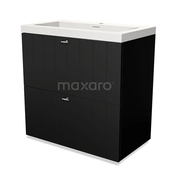 Modulo Waschtische | 80 cm Matt Schwarz Lamelle front Solid Surface 2 hohe Schubladen übereinanderliegend