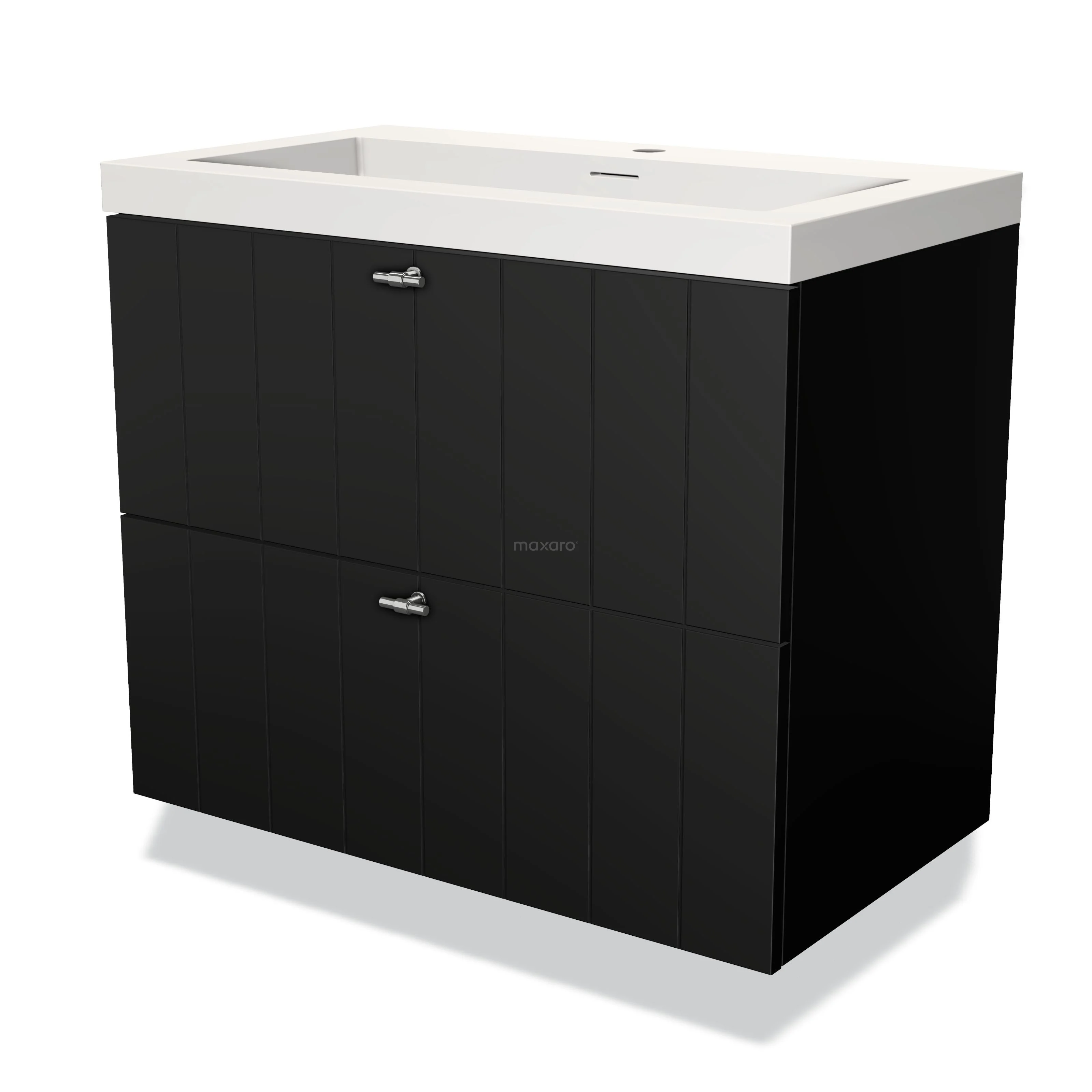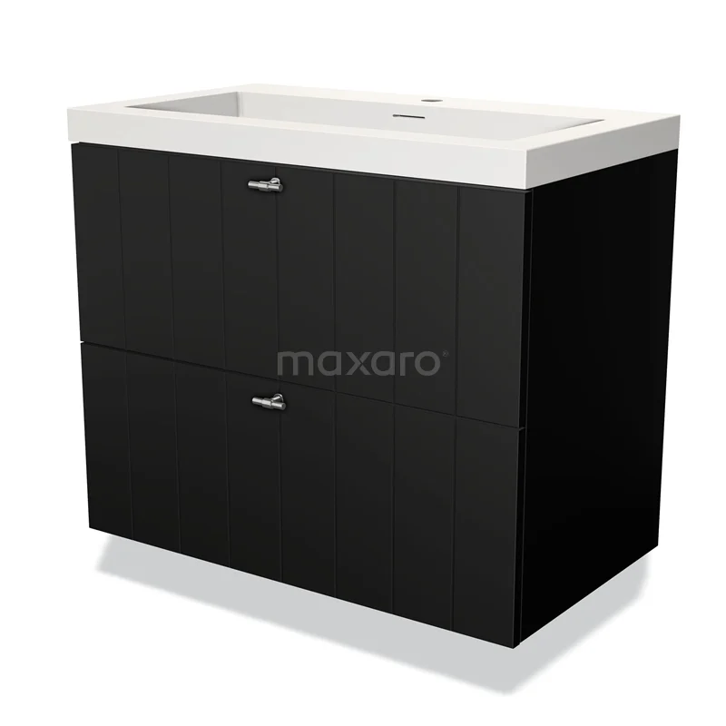 Modulo Waschtische | 80 cm Matt Schwarz Lamelle front Solid Surface 2 übereinanderliegende Schubladen