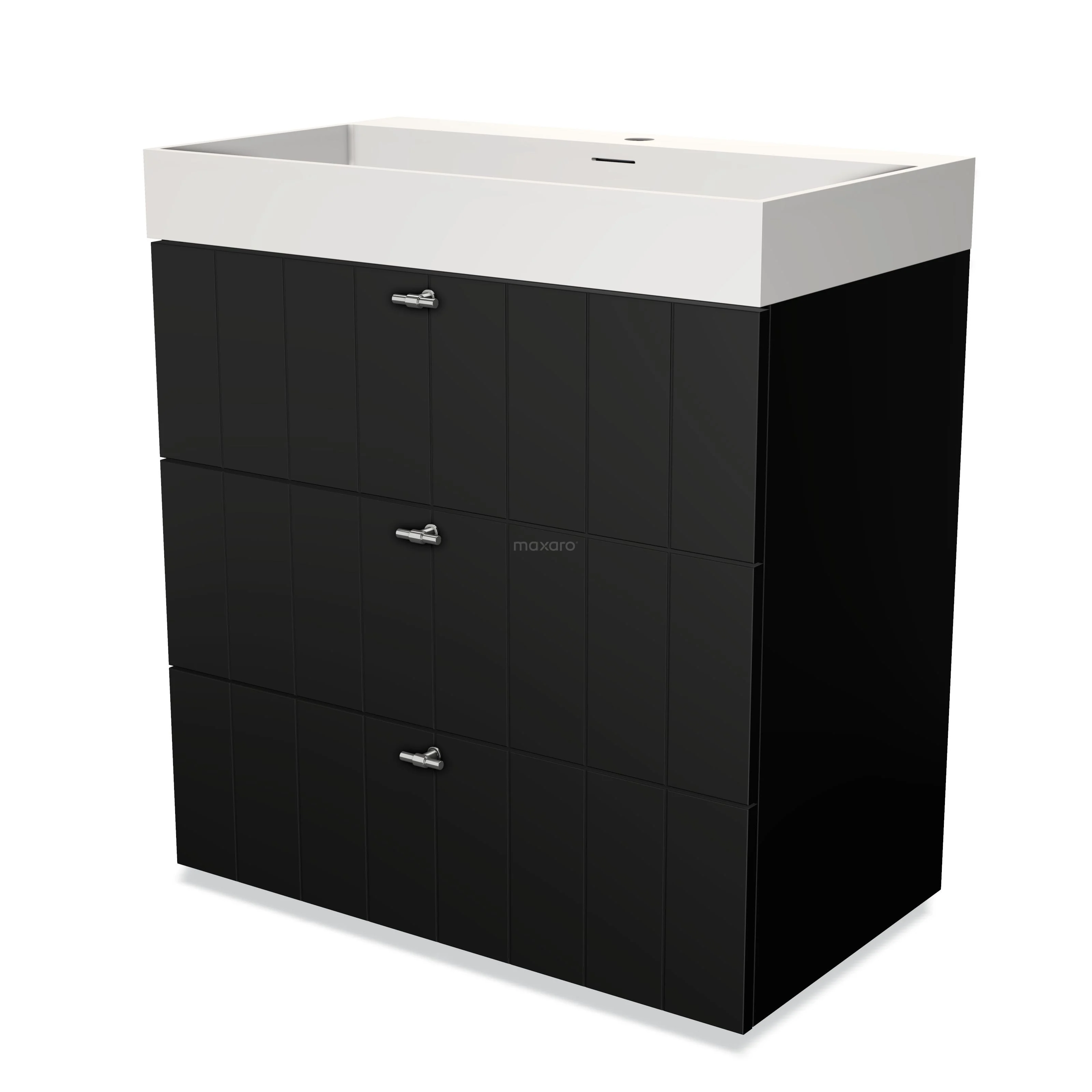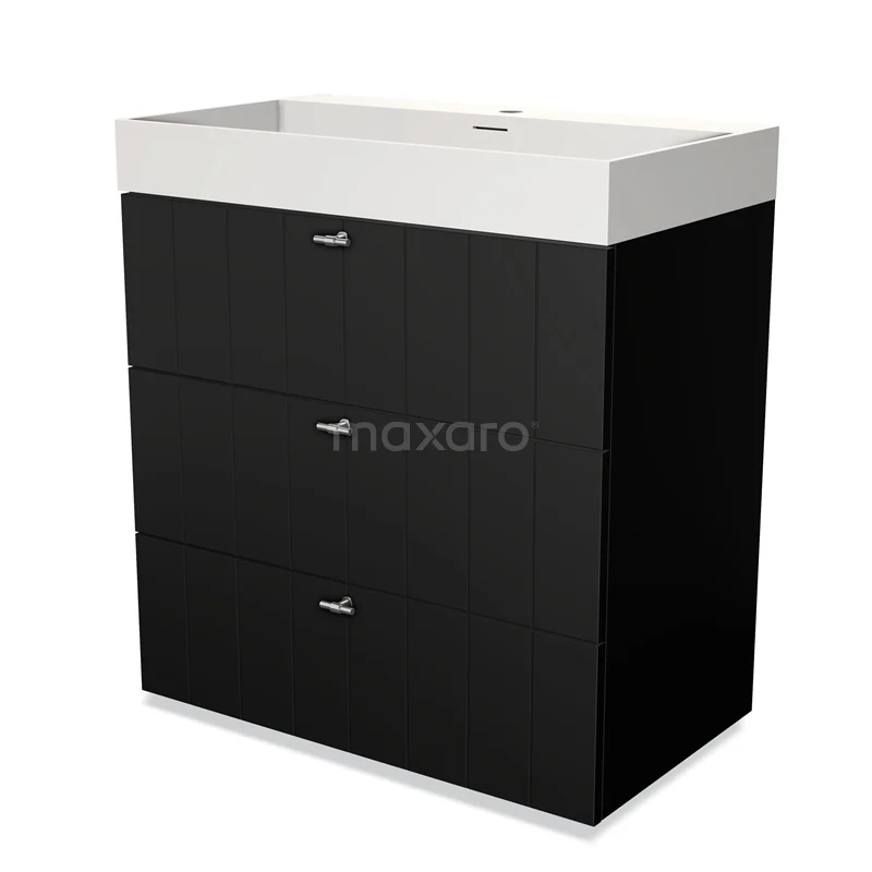 Modulo Waschtische | 80 cm Matt Schwarz Lamelle front Solid Surface 3 Schubladen