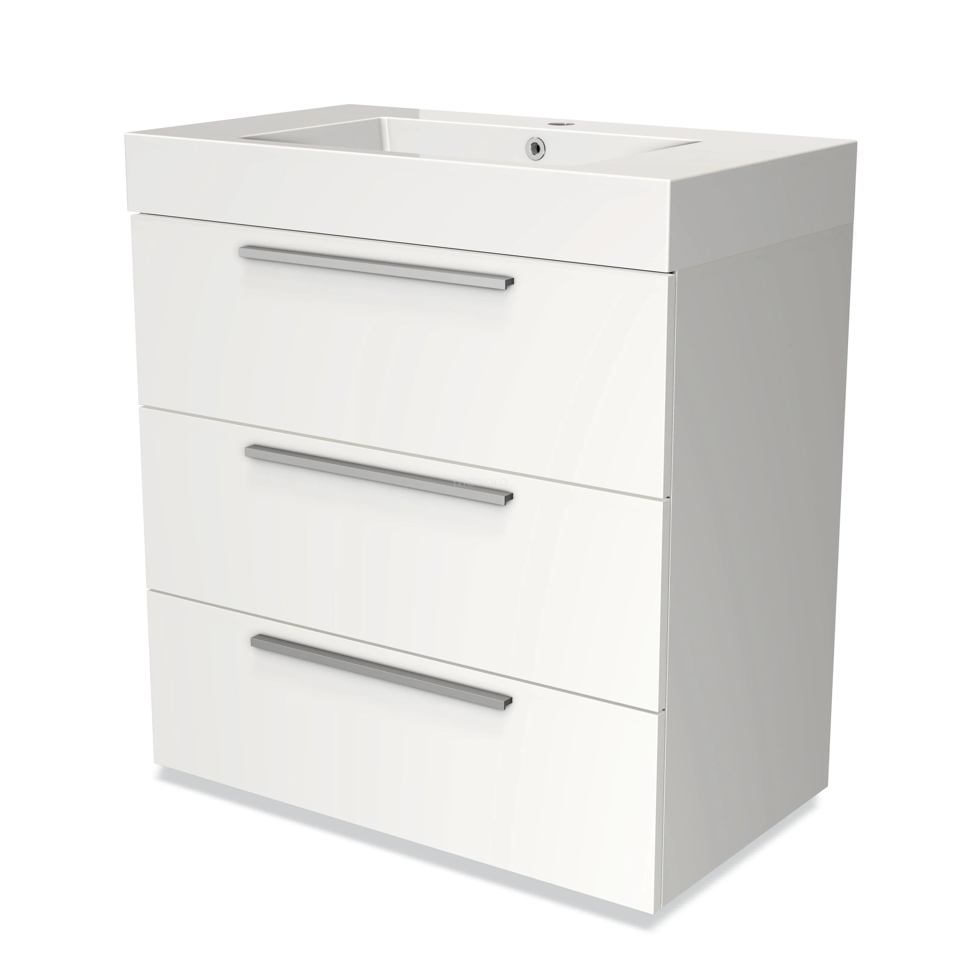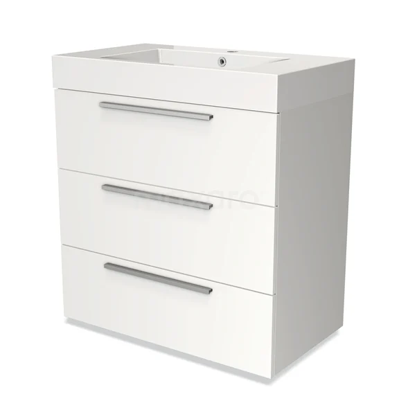 Modulo Waschtische | 80 cm Matt Weiß Flach front Mineralguss 3 Schubladen