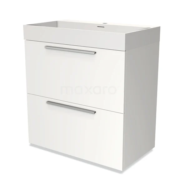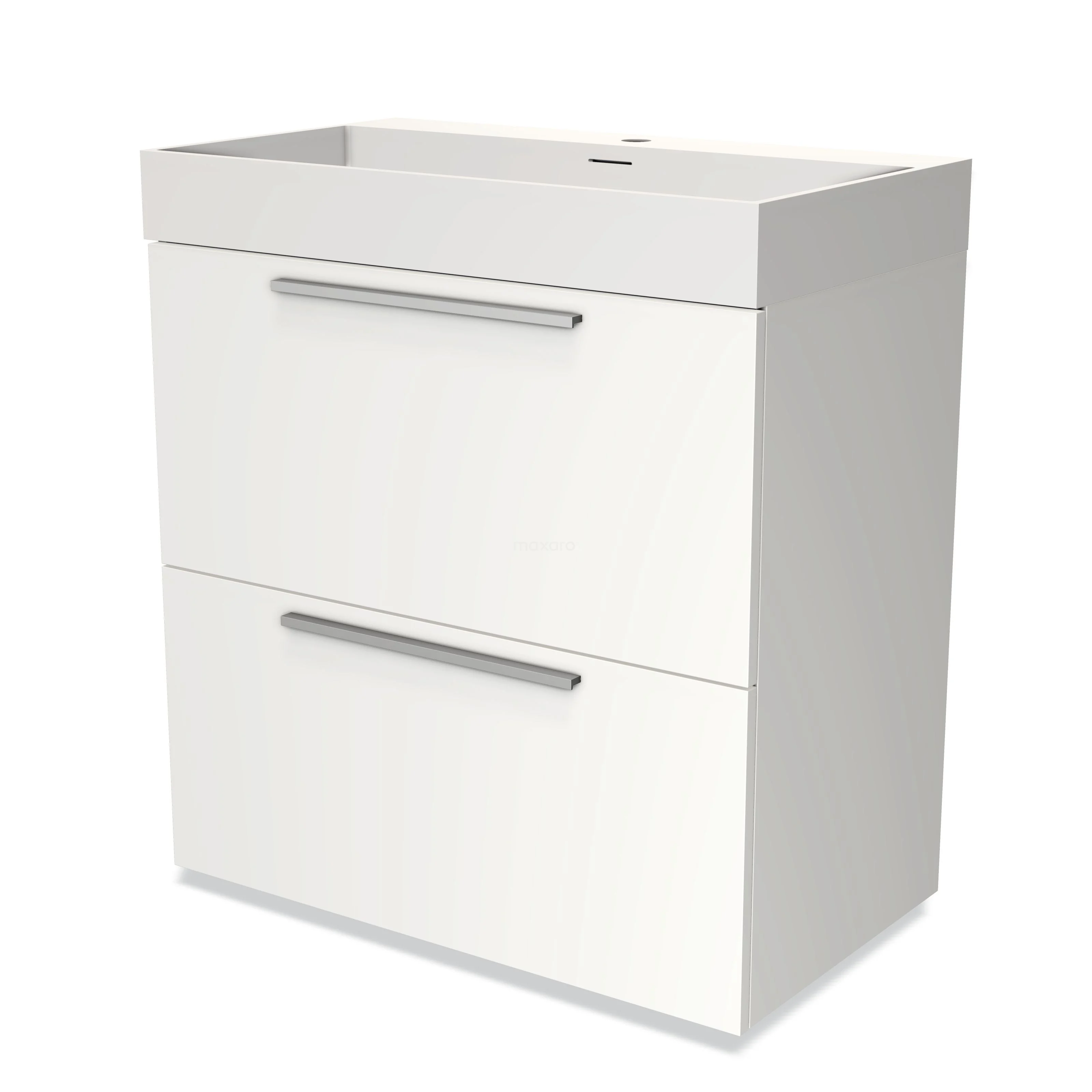 Modulo Waschtische | 80 cm Matt Weiß Flach front Solid Surface 2 hohe Schubladen übereinanderliegend