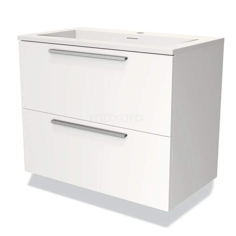Modulo Waschtische | 80 cm Matt Weiß Flach front Solid Surface 2 übereinanderliegende Schubladen