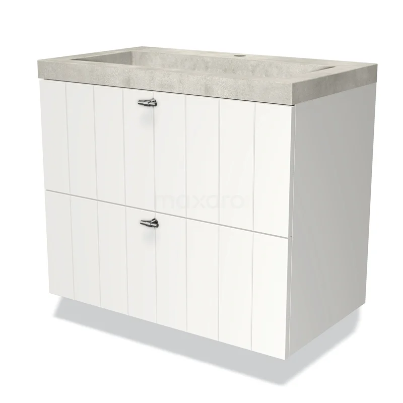 Modulo Waschtische | 80 cm Matt Weiß Lamelle front Beton 2 übereinanderliegende Schubladen