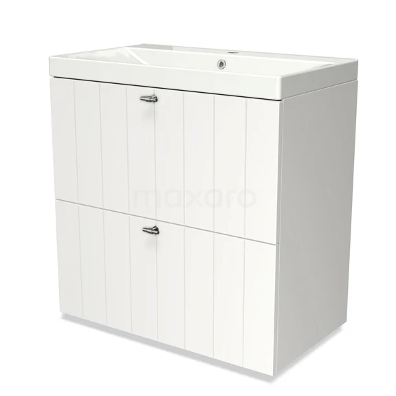 Modulo Waschtische | 80 cm Matt Weiß Lamelle front Keramik 2 hohe Schubladen übereinanderliegend