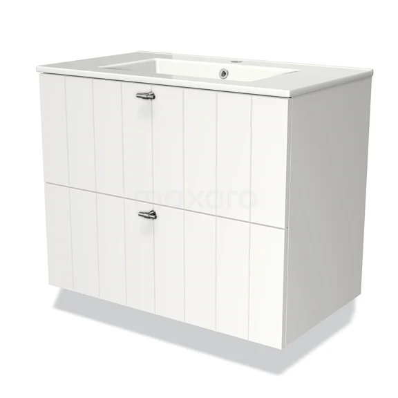 Modulo Waschtische | 80 cm Matt Weiß Lamelle front Keramik 2 übereinanderliegende Schubladen