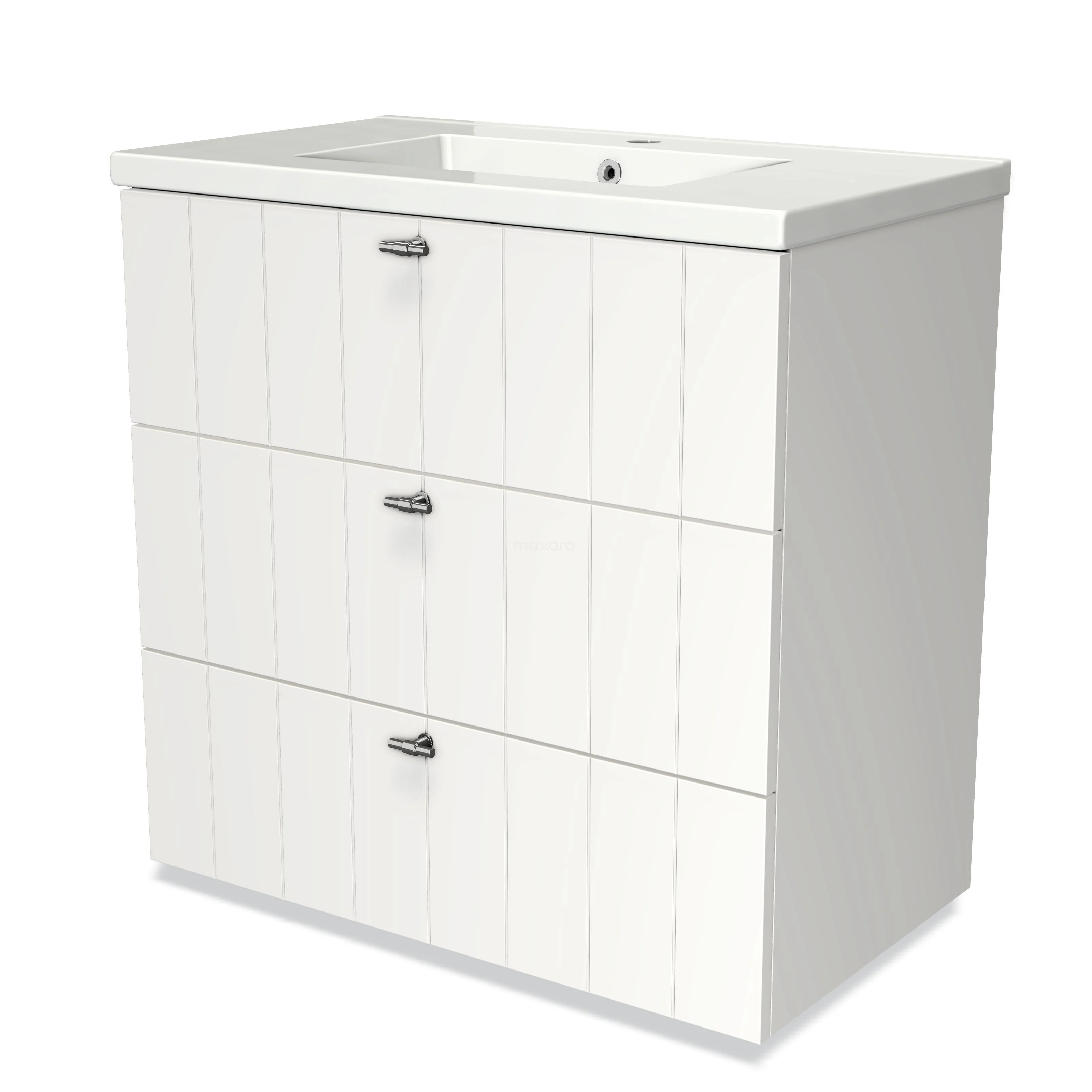 Modulo Waschtische | 80 cm Matt Weiß Lamelle front Keramik 3 Schubladen