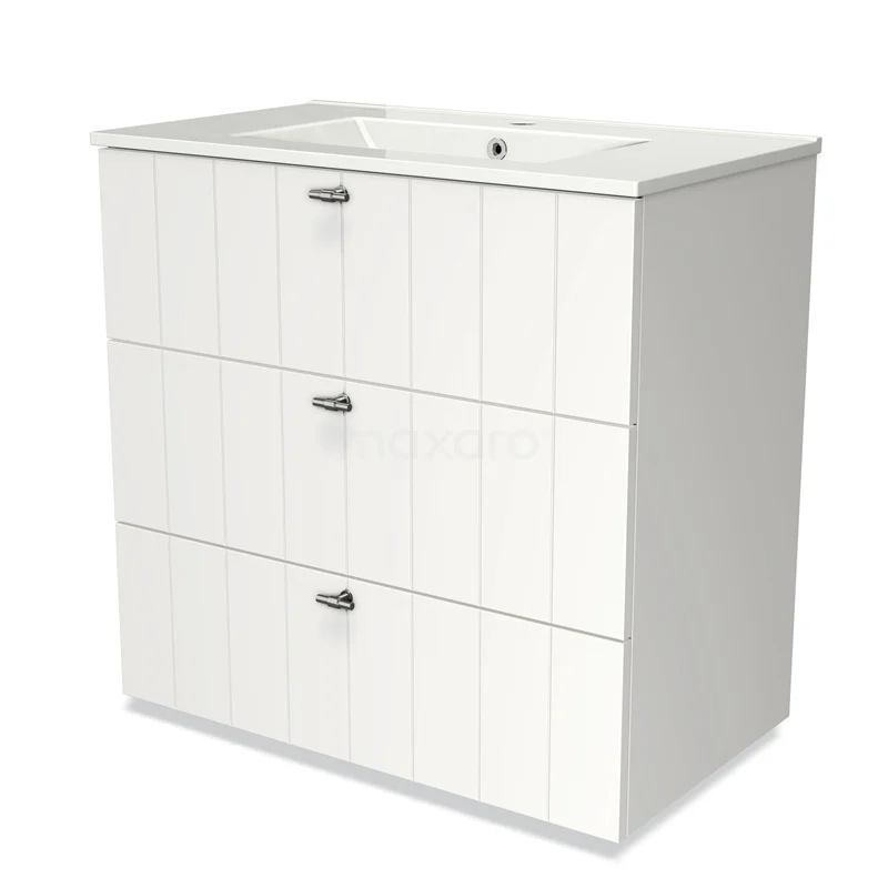 Modulo Waschtische | 80 cm Matt Weiß Lamelle front Keramik 3 Schubladen