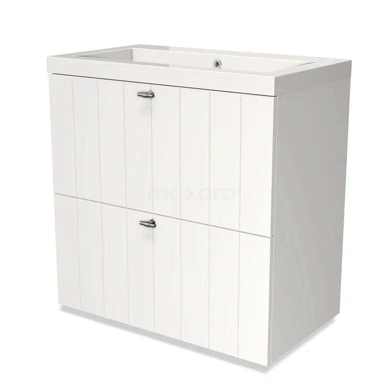 Modulo Waschtische | 80 cm Matt Weiß Lamelle front Mineralguss 2 hohe Schubladen übereinanderliegend