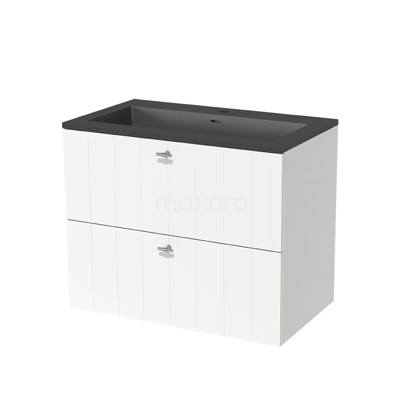 Modulo Waschtische | 80 cm Matt Weiß Lamelle front Quarz 2 übereinanderliegende Schubladen