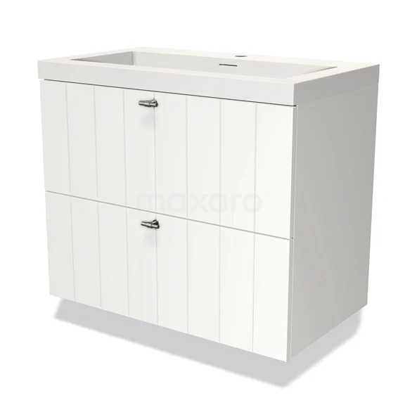 Modulo Waschtische | 80 cm Matt Weiß Lamelle front Solid Surface 2 übereinanderliegende Schubladen