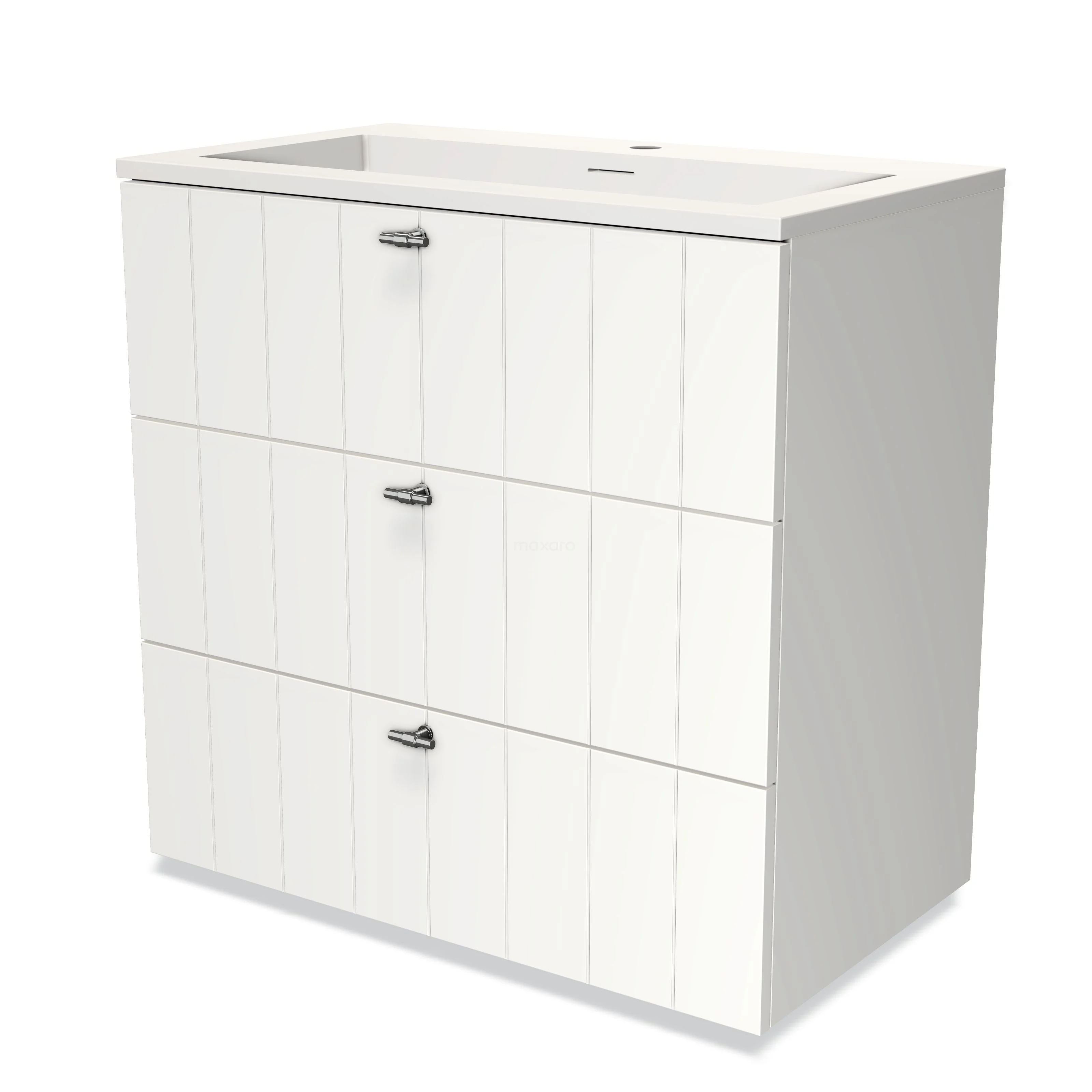 Modulo Waschtische | 80 cm Matt Weiß Lamelle front Solid Surface 3 Schubladen