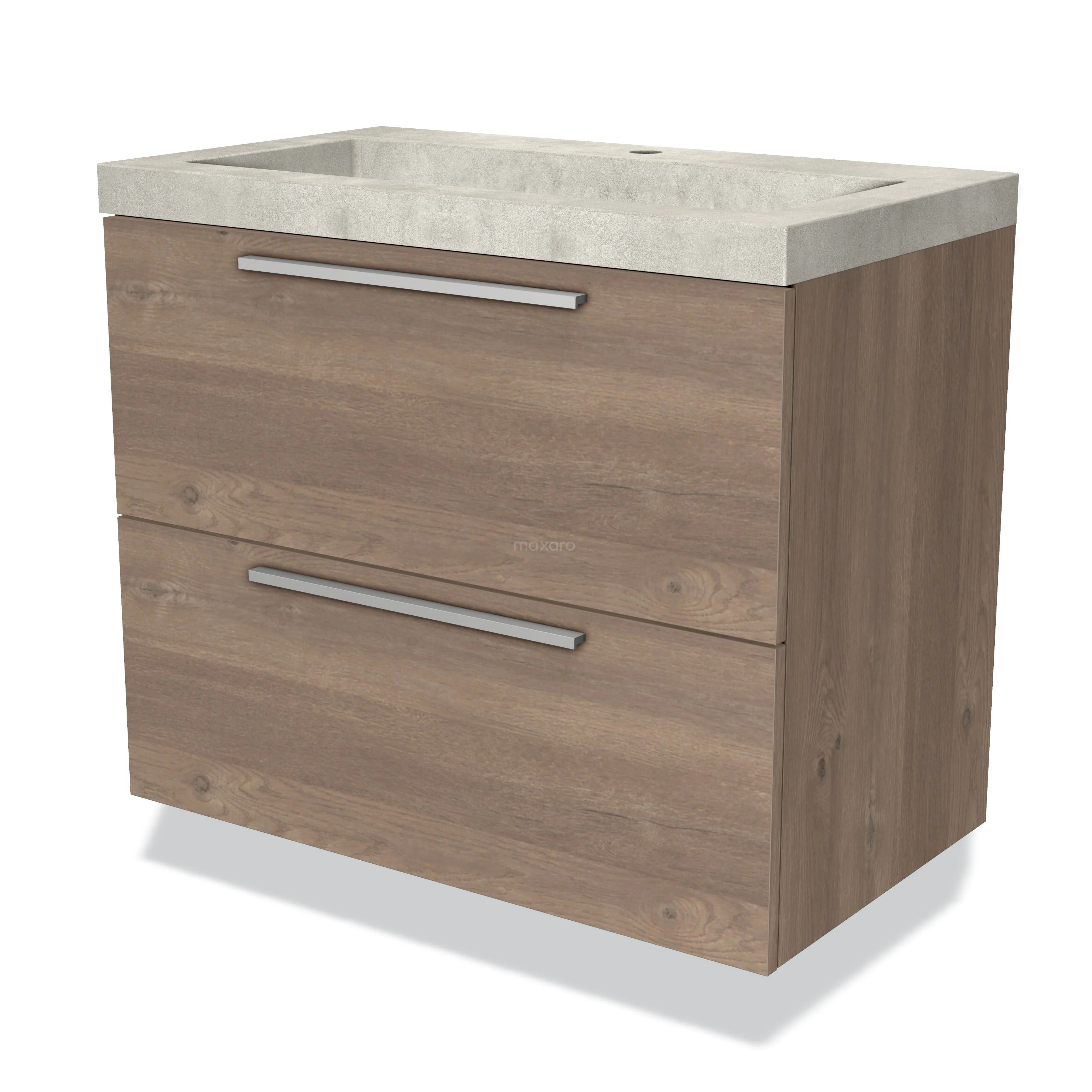 Modulo Waschtische | 80 cm Mittelbraune Eiche Flach front Beton 2 übereinanderliegende Schubladen