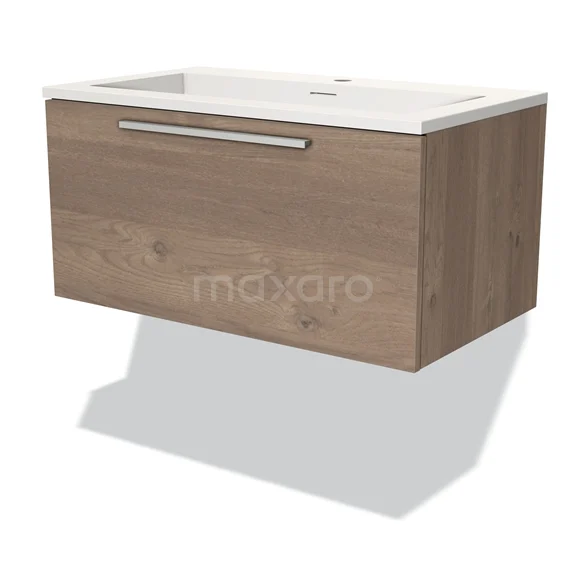 Modulo Waschtische | 80 cm Mittelbraune Eiche Flach front Solid Surface 1 Schublade