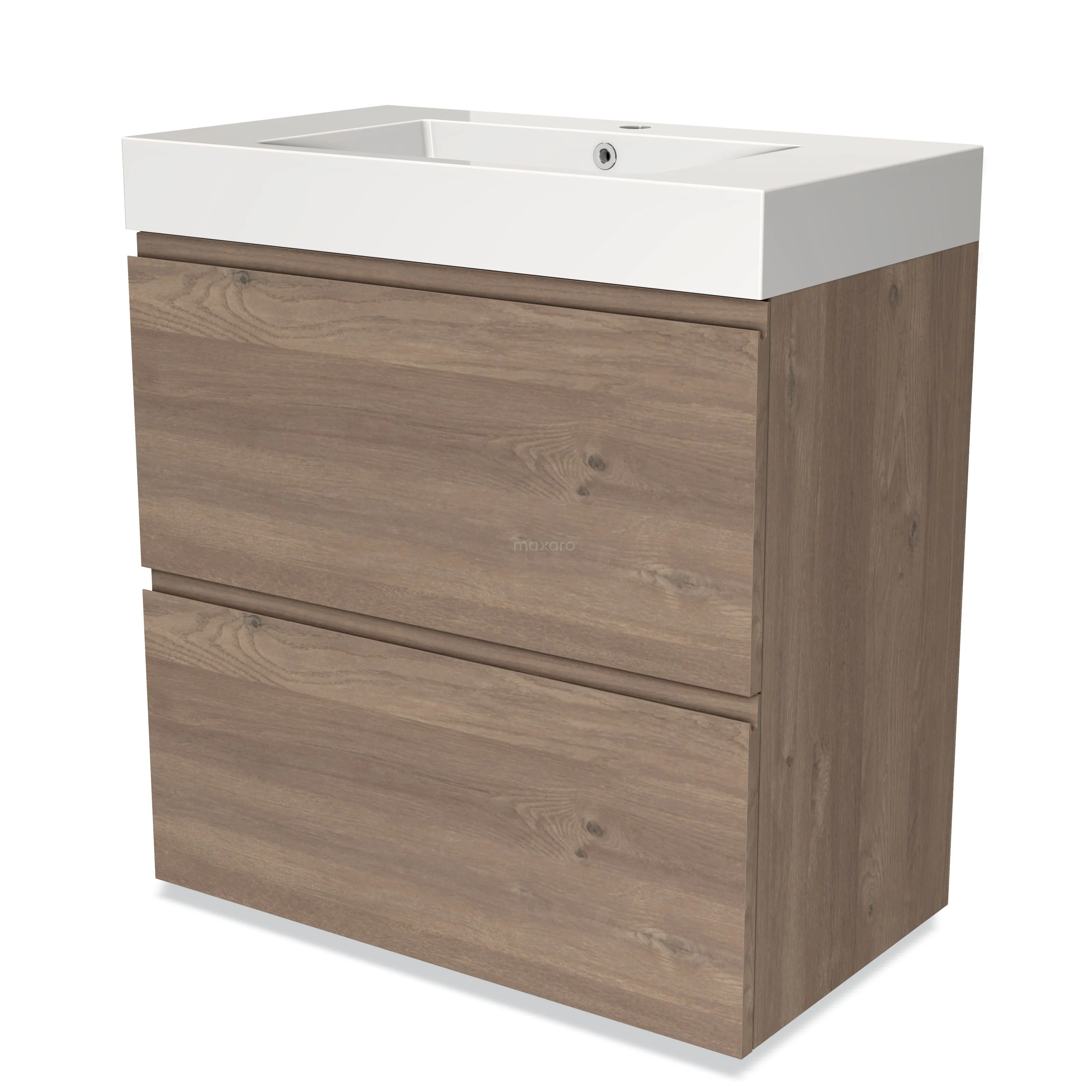 Modulo Waschtische | 80 cm Mittelbraune Eiche Grifflos front Mineralguss 2 hohe Schubladen übereinanderliegend
