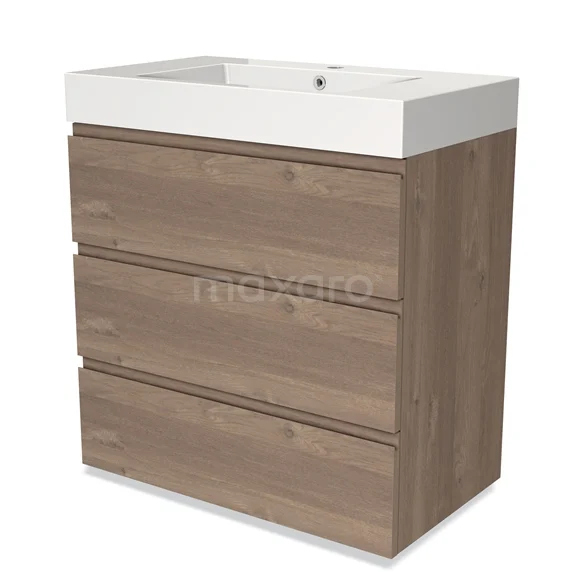 Modulo Waschtische | 80 cm Mittelbraune Eiche Grifflos front Mineralguss 3 Schubladen